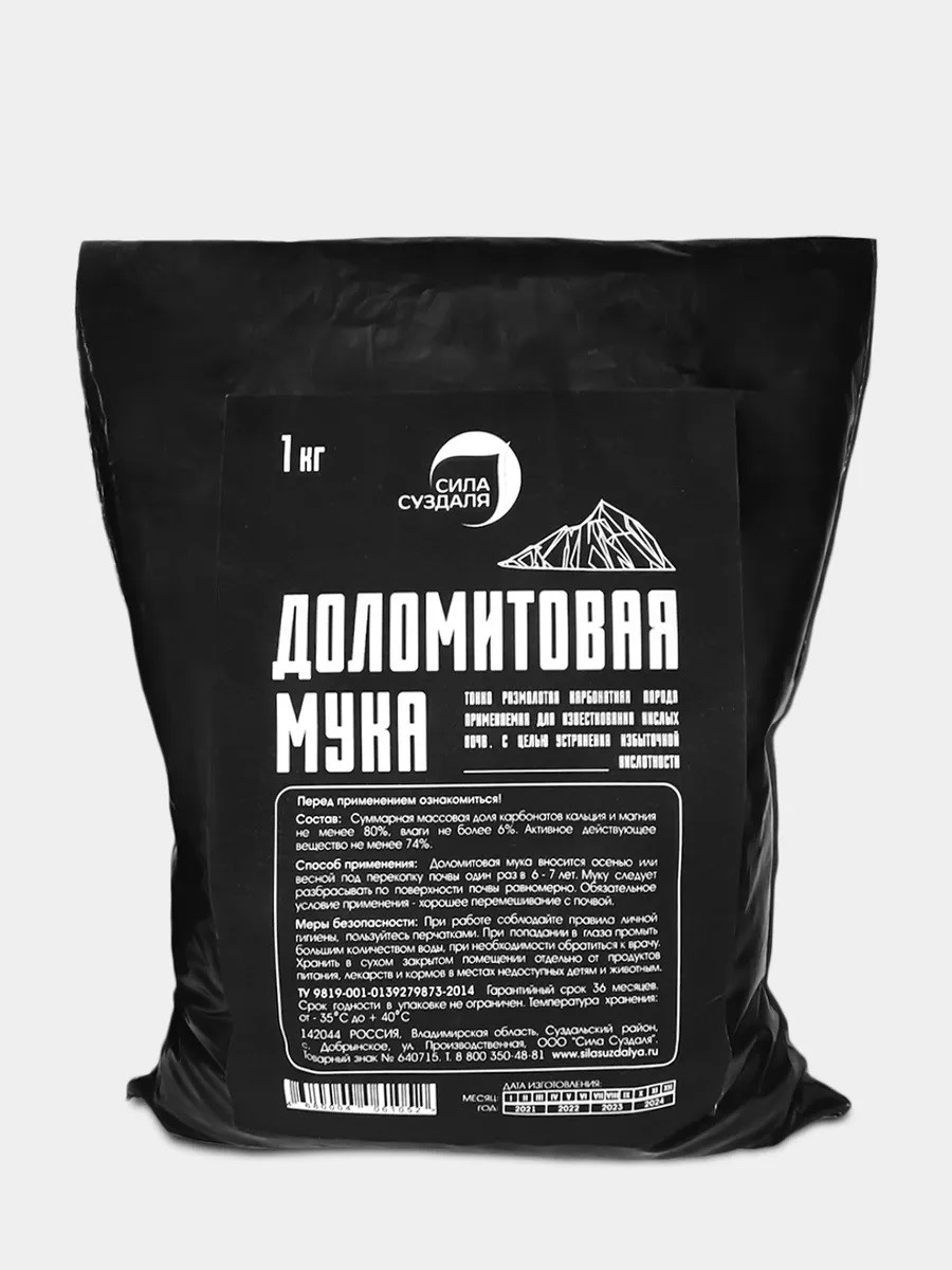 Доломитовая мука удобрение натурального происхождения, добываемое путем измельчения горной породы доломит. В основе данного вещества находится кальций, который понижает кислотность почвы, повышает химические и физические показатели грунта.В состав доломитки входит и множество других полезных минералов и прочих веществ, важных для роста и развития растений. Благодаря полностью натуральному составу известняковая мука от Сила Суздаля обладает рядом полезных свойств, насыщает почву полезными веществами, понижает кислотность грунта, эффективно борется с вредителями и насекомыми-паразитами;нейтрализует радионуклиды;повышает эффективность других удобрений делает землю более рыхлой и структурной.