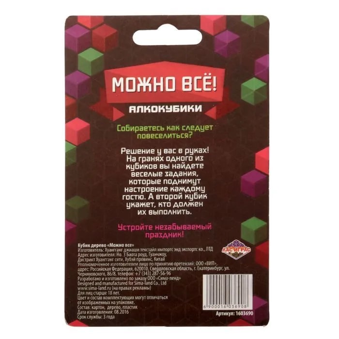 Купить кубик "можно все", алкокубики для принятия решений от 60 руб. с доставкой до пункта выдачи в Сенгилее. Интернет магазин ДекаМаркет. Оплата при получении.