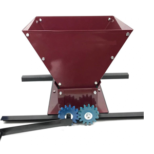 Дробилка - измельчитель для винограда представляет собой конструкцию, состоящую из приемного бункера, двух дробильных валиков, установленных параллельно друг другу . Помещенный в бункер виноград равномерно подается на дробильные валки, представляющие собой цилиндры, на поверхности которых имеются параллельные углубления . После прохождения через ролики, раздавленный виноград или другие ягоды следует в дальнейшую переработку. В частности для виноделия, брожения и т.п